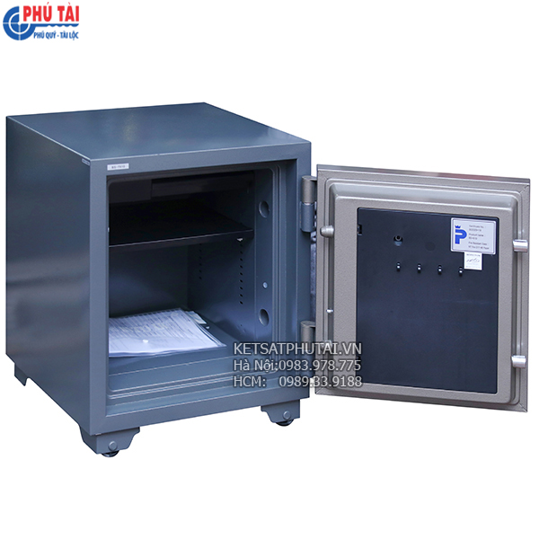 Kết cấu cánh cửa dày, thép 3 lớp: 1 lớp trong và 2 lớp ngoài ruột đúc đặc vật liệu chống cháy cao cấp tiếu chuẩn quốc tế như: CE, ISO, SP, JIS.. cùng với hệ thống chốt an toàn, thẩm mỹ ăn sâu vào thân két khi đóng cửa tăng độ chắc chắn, an toàn, chống cạy phá
