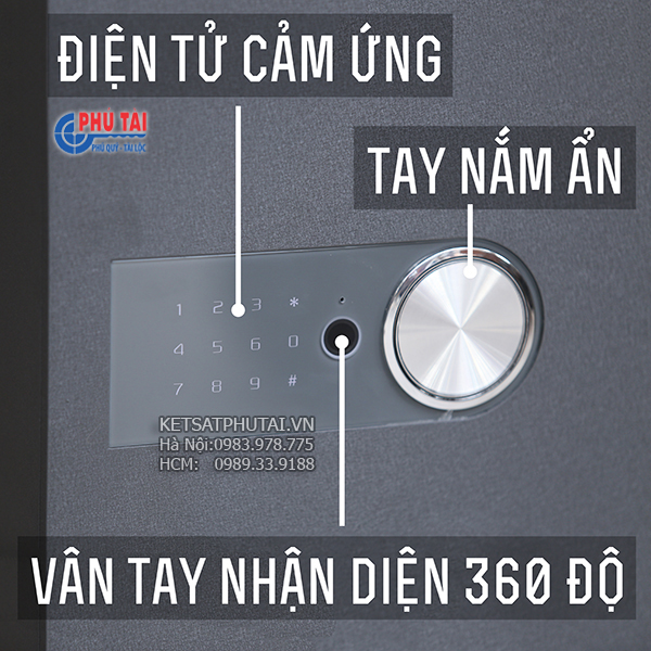 * Khóa vân tay điện tử bảo mật cao: Két được trang bị khoá mã vân tay (Cài được 99 vân tay) sử dụng công nghệ sinh trắc học tiên tiến, nhận diện đa điểm độ chính xác cao tuyệt đối an toàn bảo mật