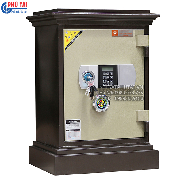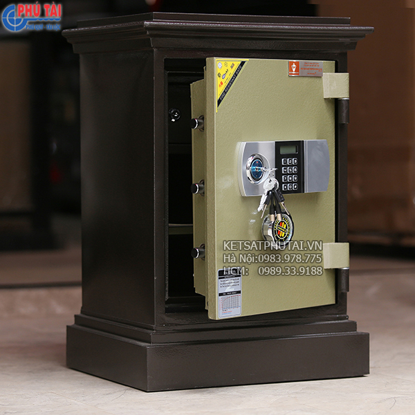 Két sắt được trang bị 01 ổ khóa chìa + 01 khóa mã điện tử cao cấp có báo động; mã số có thể thay đổi tùy ý (từ 01 đến 08 số). Bên trong két có 01 ngăn phụ có khóa. Sơn 3 lớp độ bền cao.
